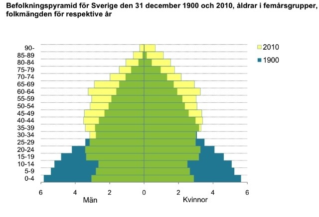 Jämfört med för hundra år sedan lever vi väldigt mycket längre och befolkningen innehållet då en större andel äldre.